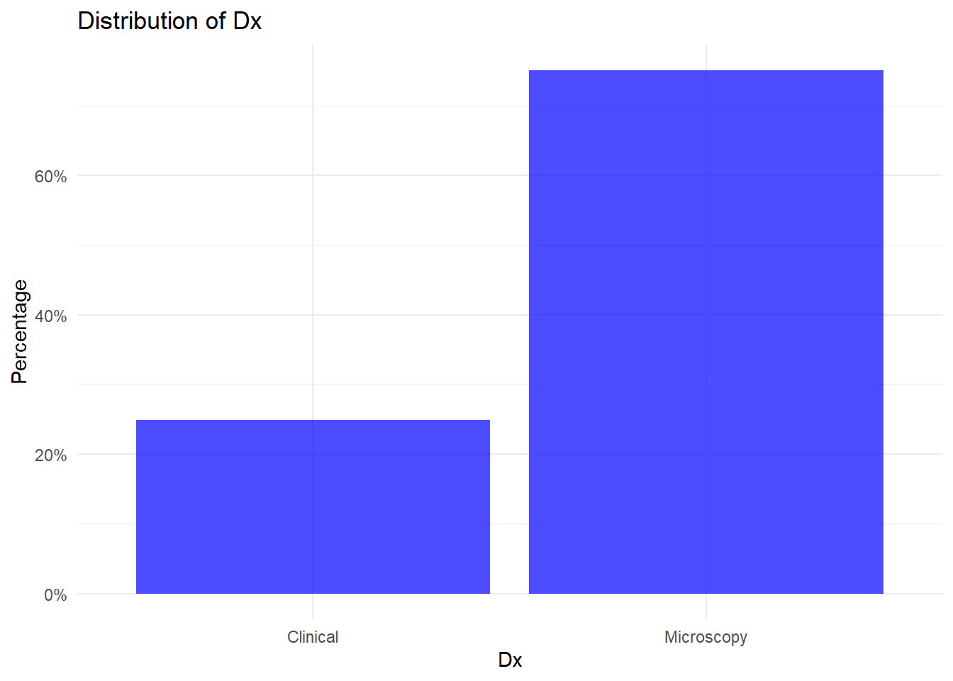 $ Dx : chr [1:197] "Microscopy" "Clinical" "Microscopy" "Microscopy" ...