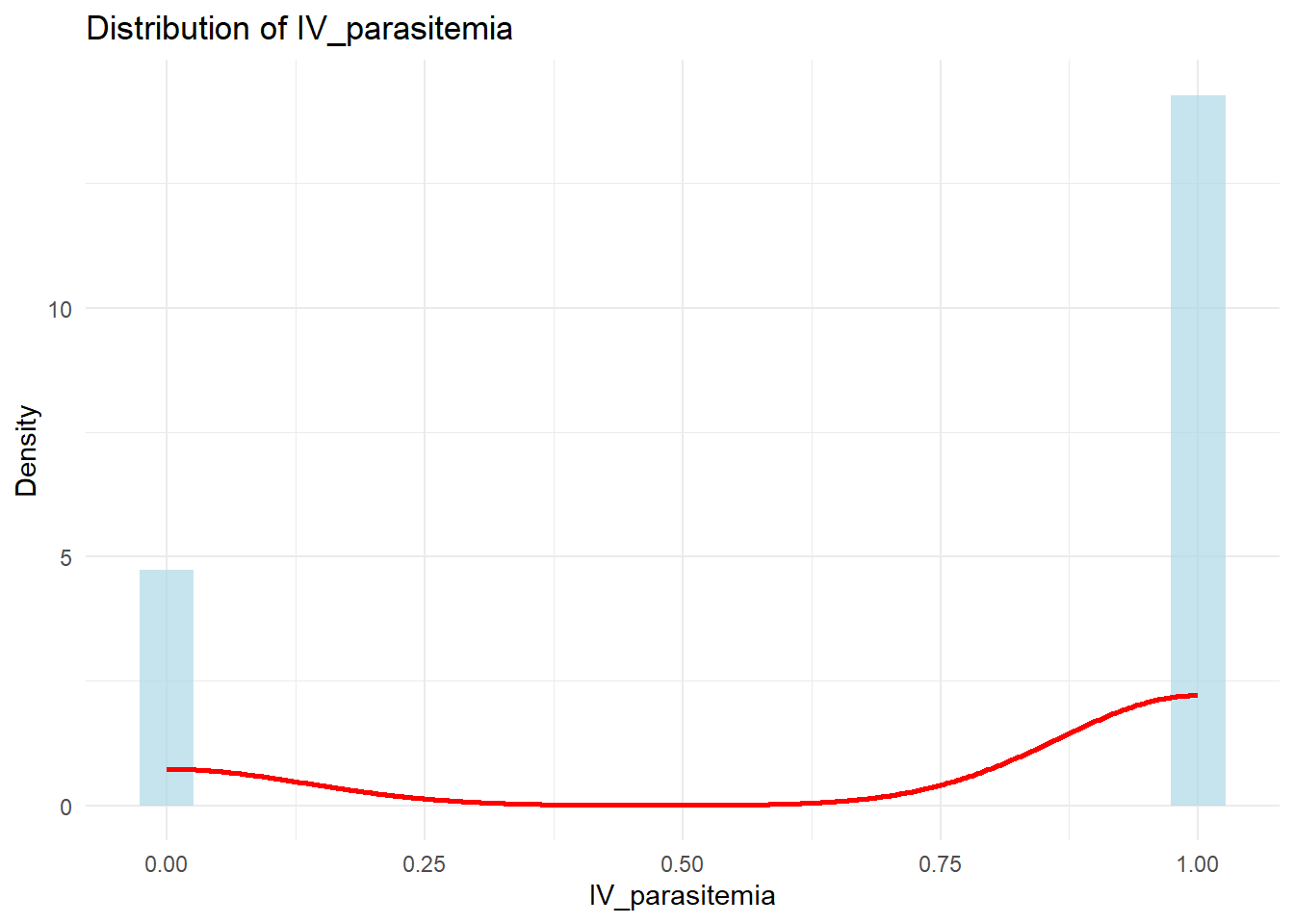 $ IV_parasitemia : num [1:197] 1 0 1 1 0 1 1 1 0 1 ...