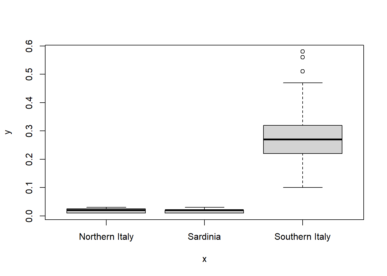 Southern Italy:323 Calabria : 56 Median :12.01 Median :1.1000